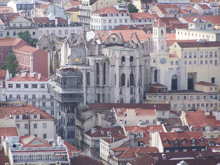 zurück - vorBlick vom Castelo de Sao Jorge, Convento do Carmo und der Elevador de Santa Justa.