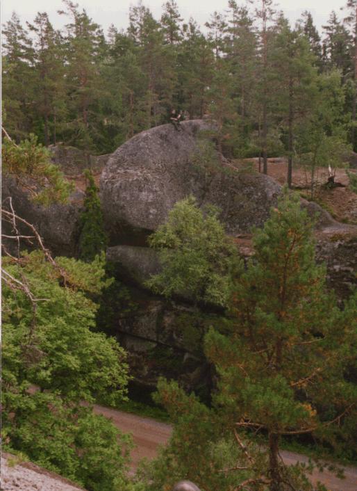 zurück - vorTiveden Nationalpark (S). Tagestour. Sehr unwegsam, da viele riesige Felsbrocken herumliegen. Ausserdem einiger Sumpf. Abseits der markierten Wege: Urwald.